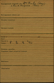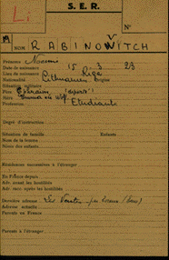 After the war and the Nazi regime had ended, Myriam (born in 1920), the eldest daughter of Ephraïm and Emma, and the only surviving member of this family, filled in the form of the French authorities searching for missing members of one’s family (at that time, she had been married already, and thus referred to herself as Madam Picalia; after her second marriage, her name was Myriam Rabinovitch-Bouveris). This is the form for Noémie: